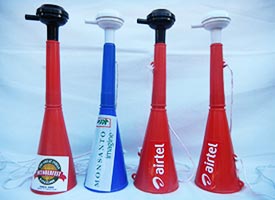 Hi Tech Rubber Industries offer you small size 10 inch size plastic cheering horns for sports meet or events and these come in different shapes and sizes.